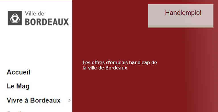 Trouver un emploi accessible est possible dans la ville de Bordeaux. Envoyer un CV et une lettre de motivations avec ou sans le caractère RQTH au service recrutement de la mairie de Bordeaux. Votre candidature sera étudiée au même titre qu'un travailleur valide et diplômé.
